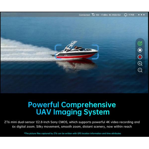 Precision requirements increase in fields such as industrial inspection: In professional fields such as industrial inspection, the requirements for the precision and functional diversity of inspection equipment are constantly rising. The thermal imaging camera of ZT6 Mini Dual-sensor optical pod has a temperature measurement range of -20°C to +550°C and high precision. It also supports 2x digital zoom, while the optical camera supports 6x digital zoom. This helps inspectors observe the inspection targets more clearly, whether it's a tiny temperature change or distant details, and can accurately capture them, providing reliable data support for industrial inspection and other fields.
